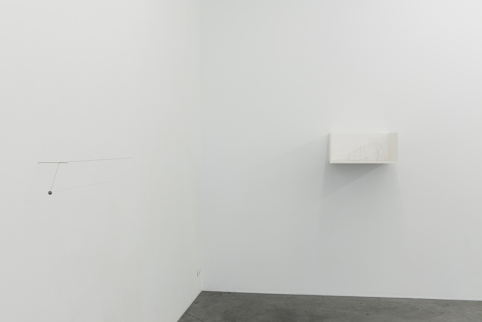 impossible line, 2014, spring steel, lead, wire and pencil line